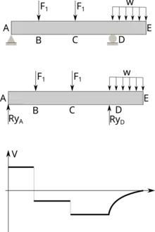 O gráfico de esforço cortante é diretamente relacionado com outros diagramas importantes na análise de vigas, uma vez que integrando o diagrama de esforço cortante obtemos o diagrama de momento fletor.[5]