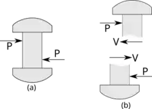A tensão de cisalhamento que é gerada por um certo esforço cortante pode ser definida pela razão entre a força cortante e a área de seção transversal[4]: