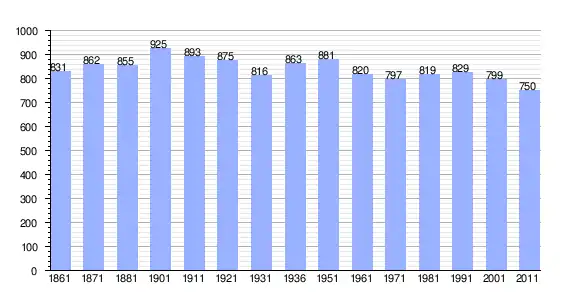 | Variação demográfica do município entre 1861 e 2011[3] |