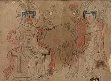 - Anderl, Christoph (2018). «Linking Khotan and Dūnhuáng: Buddhist Narratives in Text and Image» (PDF). Entangled Religions: Interdisciplinary Journal for the Study of Religious Contact and Transfer. 5: 250–311. ISSN 2363-6696. Cópia arquivada (PDF) em 18 de março de 2020