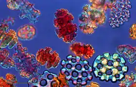 ![]() Espículas calcárias com três raios em esponja da família Pachastrellidae. |