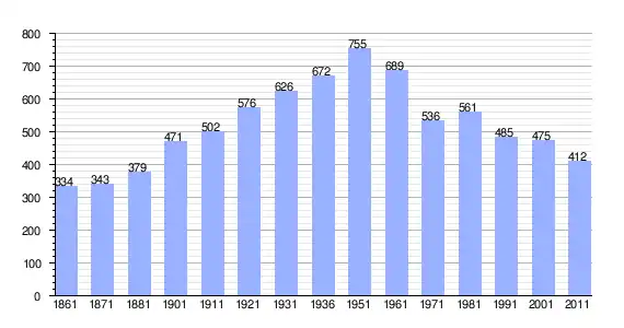 | Variação demográfica do município entre 1861 e 2011[3] |
