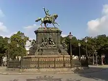 O monumento foi erguido por iniciativa de Pedro II do Brasil, em homenagem à proclamação da Independência do país, com projeto do artista brasileiro João Maximiano Mafra. As esculturas em bronze foram executadas e fundidas em Paris por Louis Rochet.[2]