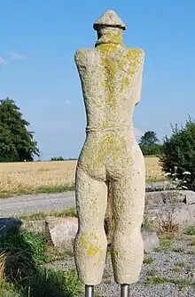 - 33. Lugar da Cividade, Paderne, Melgaço, torso duma estátua de guerreiro com um pequeno escudo.[7]
