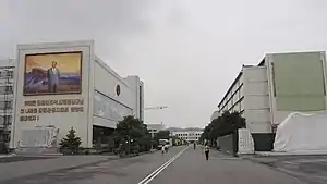 Construído em 1995 para comemorar o 50º aniversário do Partido dos Trabalhadores da Coreia do Norte,[18] o Monumento à Fundação do Partido dos Trabalhadores da Coreia tem 164 pés (50 metros) de altura e retrata três punhos gigantes segurando um martelo, uma foice e um pincel de caligrafia, símbolos do partido.