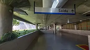 Estação subterrânea, com uma única plataforma central e estrutura em concreto aparente dividida em dois níveis (Mezanino e Plataforma). Possui em seu acesso principal um amplo e largo corredor onde estão expostas obras dos pintor Francisco Domingos da Silva.