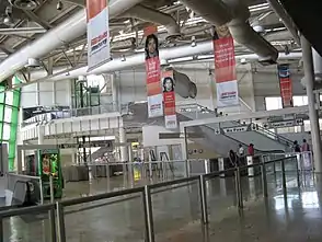 No primeiro piso, existem algumas lojas que vendem roupas, bolsas, colares, pulseiras e outros acessórios. Já no nível superficial, são vendidos alimentos e revistas, dentre outras coisas, em quiosques. A estação foi projetada pelo escritório de arquitetura Pladis.[4]
