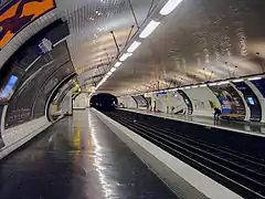 Europe é uma estação de configuração padrão: ela tem duas plataformas laterais, separadas pelas vias do metrô e a abóbada é elíptica. Se a decoração é clássica com pisos em azulejo branco recortado cobrindo as ombreiras, o arco e tímpanos, ele tem a particularidade de estar equipada com telas de cristal líquido desde as comemorações do centenário do metro, mostrando curtas metragens ou diaporamas. A iluminação é fornecida por duas bandas-tubos. Os quadros publicitários são metálicos e o nome da estação é inscrito na fonte Parisine em placas esmaltadas. As plataformas são equipados com bancos em ripas de madeira.