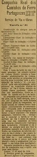 Concurso de 1894 para a construção de abrigos em vários apeadeiros, incluindo no Campo Pequeno.