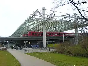 Um grande telhado de vidro monumental abrange todas as pistas e o terminal de ônibus. O projeto da estação ganhou vários prêmios, entre outros, os Prêmios de Design Europeu de aço.