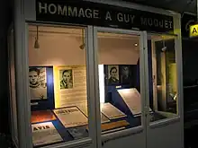 No meio de uma das plataformas, uma vitrine apresentava reproduções de fotografias de Guy Môquet, sua mãe, e de seu pai, Prosper Môquet, de sua última carta e vários documentos. Por ocasião da comemoração de 22 de outubro de 2007, as prateleiras foram repintadas e o material de iluminação foi renovado.[5]