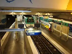 Sobre as três vias, a da esquerda serve como garagem dos trens, a do meio em retorno (com calçada) e a da direita é utilizada pelo MRF (pequeno local de manutenção equipado de uma via de retorno em poço). Depois das vias de retorno, existem seis posições de garagem. No total, a estação dispõe de quatorze posições de garagem.