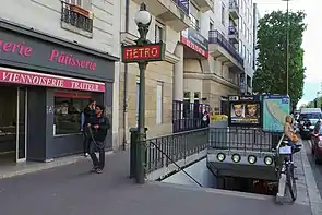 - O acesso 3 "rue de Valmy" constituído por uma escada fixa decorada com um mastro Dervaux, se situando à direita do nº 150 da rue de Paris.