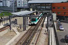 A conclusão da extensão exigiu a travessia da via expressa RD1, por meio de um cruzamento em desnível. Essa estrutura de 8,20 m de comprimento e 8,20 m de largura ultrapassa a linha de 4,10 m e repousa sobre estacas de 80 mm de diâmetro ancorados a 18 m de profundidade. O custo total previsto da obra é de 83 milhões de euros.