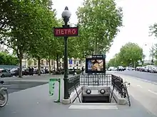 A estação tem dois acessos constituídos por escadas fixas construídas lado a lado, cada um com uma balaustrada de tipo Dervaux e levando ao terrapleno central da place du Bataillon-Français-de-l'ONU-en-Corée.