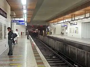 As duas plataformas laterais enquadrando as duas vias são estabelecidas alinhadas ao nível do solo sob uma laje sobre a qual é construído um grande salão de recepção. Portanto não há nível intermediário entre a superfície e as plataformas, uma situação muito incomum para o Metrô de Paris.[8]