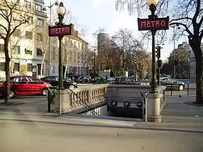 Ela dispõe de uma única entrada situada na place André Tardieu. O acesso à estação é dotado de uma entourage de pedra, sobre a qual está gravada o nome da estação. Esta entourage de estilo neoclássico é devido ao arquiteto Joseph Marie Cassien-Bernard.