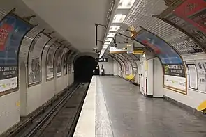 Esta é uma das poucas estações da rede cuja decoração em faiança de estilo "CMP" não é mais original.