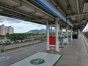 Estação de superfície, com plataforma central, estruturas em concreto aparente, mapas de localização, sistemas de sonorização, além de possuir acessos, piso tátil e elevadores para pessoas portadoras de deficiência.