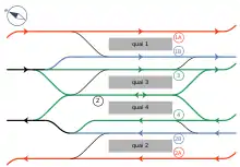 As vias férreas das três linhas da rede expressa regional são todas orientadas paralelamente a um eixo noroeste - sudeste apresentando um ângulo de cerca de cinco graus em relação ao eixo norte-sul. As sete vias servem quatro plataformas: as duas plataformas centrais são reservadas aos trens da linha D enquanto que as plataformas situadas nas extremidades laterais leste e oeste são reservadas aos trens das linhas A e B. Para estes últimos, a correspondência pode ser feita na mesma plataforma de acordo com os destinos. A via da linha A em direção a Gare de Lyon e a via da linha B em direção a Saint-Michel - Notre-Dame são assim situadas na plataforma leste. Inversamente, a via da linha B em direção a Gare du Nord e a via da linha A em direção a Auber são todas as duas situadas na plataforma oeste. Enquanto que as vias da linha B ficam ao lado daquelas da linha D, as vias da linha A estão situadas nos lados leste e oeste. Em cada plataforma, os trens viajam na mesma direção. Assim, sobre as passagens da estação, os trens na direção da Gare du Nord passam do sudeste para o noroeste e aqueles em direção de Saint-Michel do noroeste ao sudeste.