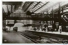 Estação de Nottingham Victoria na década de 1900. À direita da imagem está o Victoria Hotel, atualmente Hilton Hotéis.