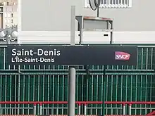 Em julho de 2015, novas placas apareceram nas plataformas da estação, às quais se acrescenta a menção L'Île-Saint-Denis, que lembra o serviço indireto desta localidade situada a cerca de 450 m do estabelecimento e muitas vezes considerada, erroneamente, como parte de Saint-Denis.[8]
