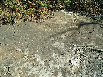 Para além de motivos geométricos (quadrangulares e rectangulares), figuram-se setas e pontas de seta; vulvas e signos de Salomão, junto com elementos escudiformes, um pentagrama e caracteres pré-alfabetiformes e latinos, sem esquecer os característicos ponteados, distribuídos numa área de aproximadamente seis metros quadrados.