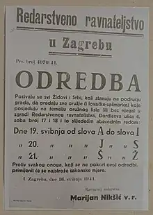 Em 16 de agosto de 1941, foi estabelecido o Serviço de Vigilância Ustaše, composto por quatro departamentos, a Polícia Ustasha, o Serviço de Inteligência Ustasha, a Defesa Ustasha e o Pessoal, para a supressão de atividades contra a Ustasha, o Estado Independente da Croácia e a Croácia. pessoas. O Serviço foi eliminado como agência separada em janeiro de 1943 e as funções foram transferidas para o Ministério do Interior sob a Direção de Ordem Pública. [53]