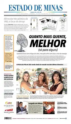 O Estado de Minas circula diariamente com seus cadernos fixos: Política, Opinião, Nacional, Internacional, Economia, Gerais, Super Esportes e EM Cultura. Os seus suplementos são: Agronegócio, Bem viver, Ciência & Saúde, Degusta, Direito & Justiça, Divirta-se, Emprego (Admite-se), Especial, Feminino & Masculino, Hora Livre, Imóveis (LugarCerto), Negócios & Oportunidades, Pensar, Prazer EM Ajudar, Turismo, TV e Veículos (Vrum). Ao lado de Folha de S. Paulo, Zero Hora, O Globo, Correio Braziliense e O Estado de S. Paulo, entre outros, forma o grupo dos principais jornais de referência do Brasil.[1][2]