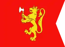 A bandeira é o brasão de armas da Noruega em forma de banner e apresenta um leão dourado sobre um campo vermelho. Com a dissolução da União em 1905 e a eleição de um novo rei, o brasão do Leão Norueguês foi posteriormente adotado para uso pelo rei, assim como a antiga bandeira real.