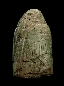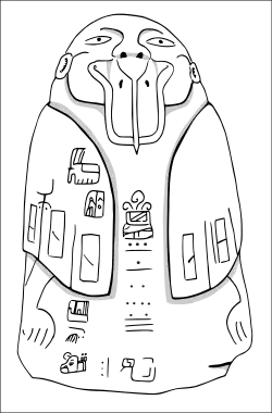 A face humana talhada na pedra nada tem de notável exceptuando o longo bico que se estende ao longo do seu peito. Este bico tem sido identificado como sendo de arapapá, uma ave abundante ao longo das costas do golfo do México de Tabasco e Veracruz.[2] O corpo encontra-se envolvido por asas levantadas ou uma capa semelhante a asas e na base foram gravados pés.