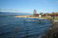 A área de 6,4 km² do território municipal abrange uma parte da margem sul do lago Neuchtâtel (cerca de 3,5 km da extensão da margem do lago). Na zona de Estavayer-le-Lac, o lago possui uma zona ripária baixa de até 500 metros de extensão. Especialmente na parte nordeste na qual se encontra a lagoa Grande Gouille, predominavam faixas florestais de junco e pântanos. Essas zonas pertencem à preservação ambiental da Grande Cariçaie.