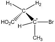 As moléculas podem ter vários centros estereogênicos, como por exemplo, para o (2R,3R)-2-3-dibromobutano. Para determinar a configuração absoluta, considera-se cada centro separadamente e cada centro é especificada como R e S. O grupamento contendo o segundo centro estereogênico é considerado como um substituinte[6].