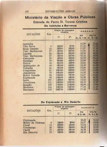 - Walter Zumblick, Teresa Cristina. A Ferrovia do Carvão. Florianópolis: Editora da UFSC, 1987. p. 132
