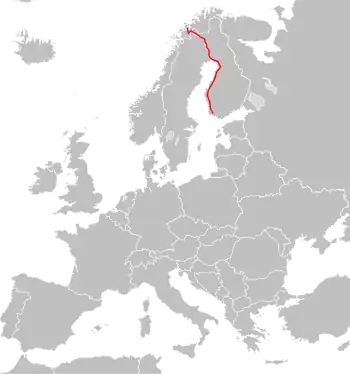 E 08 - Tromsø - Nordkjosbotn - Skibotn - Kilpisjärvi - Tornio - Oulu - Vaasa - Turku
