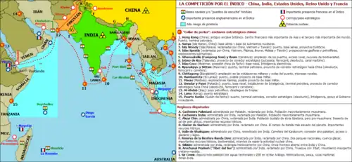 - Este artigo foi inicialmente traduzido, total ou parcialmente, do artigo da Wikipédia em inglês cujo título é «String of Pearls (Indian Ocean)».