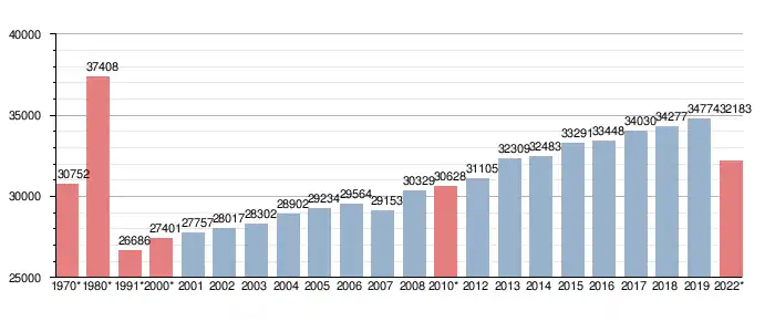 Em 2010, o município possuía 30.628 habitantes,[5] em uma área de 184,2 km²,[6] tendo assim uma densidade populacional de 166,3 hab/km². Segundo o censo de 2010, possui um total de 15.126 homens (49,3862%) e 15.502 mulheres (50,6138%).[5] Na área rural, são 4.706 pessoas (15.37%).[5]