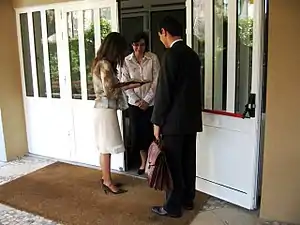 Faz-se uma breve visita a cada pessoa, procurando palestrar sobre um tópico bíblico e deixando publicações apropriadas com as pessoas que mostrarem interesse. Procura-se contactar sempre que possível todos os moradores indicados na porção de território designado. Após estar concluído, esse território será novamente designado a outro publicador.