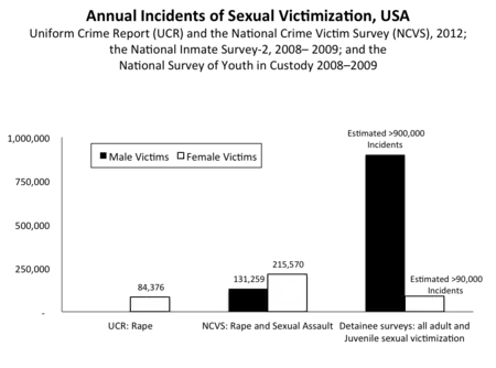 Vários estudos sobre estupro carcerário homem-homem, bem como estupro carcerário mulher-mulher, são comuns e não são notificados até com mais frequência do que o estupro na população em geral.[11][12][13]