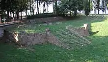 "[Rômulo] fundou a cidade, tendo convocado homens da Etrúria que prescreviam tudo de acordo com as ordenanças e escritos sagrados, assim como em um rito religioso. Pois uma trincheira circular foi cavada perto da área do atual Comício, e os primeiros frutos de todas as coisas .... foram depositados aqui. E, finalmente, cada homem veio carregando uma pequena porção de sua terra natal, e essas ofertas foram jogadas neste poço e misturadas com as primícias. Eles chamam essa trincheira pelo mesmo nome que a dos céus, um mundus."