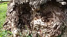 Após sair do ovo a broca (larva) passa a se alimentar da região subcortical da árvore e depois segue em direção às raízes, o que provoca a perda de sustentação da mesma e podendo levar à queda; no primeiro ínstar (estágio de desenvolvimento) mede cerca de 1 cm, e no último atingindo de 8 a 15 cm.[9]