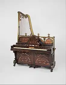 Eufônico é um instrumento de cordas e teclado, semelhante ao piano, com cordas de harpa.