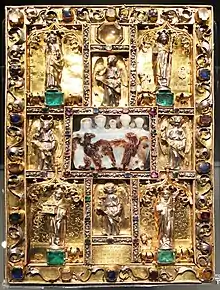 Em 1499, o códice recebeu uma rica encadernação esculpida em ouro que inclui o Late Antique Eagle Cameo exibindo a família do Imperador Constantino.[1]
