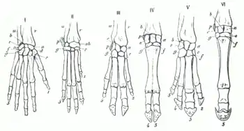 A disposição dos ossos dos membros chamados de pentadáctilos é um exemplo de estruturas homologas. É encontrado em todas as classes de tetrápodes (de anfíbios a mamíferos). Pode até ser ligado as nadadeiras de certos fósseis de peixes dos quais os anfíbios teriam evoluído. O membro tem um único osso proximal (úmero), dois ossos distais (rádio e a ulna), uma série de carpos (ossos do pulso), seguido por uma série de metacarpos (ossos da palma) e falanges (dedos). Através dos tetrápodes, as estruturas fundamentais dos membros pentadáctilos são os mesmos, indicando que eles originaram-se de um ancestral em comum. Mas através do curso da evolução, estas estruturas fundamentais foram se modificando. Eles se tornaram estruturas superficialmente diferentes e aparentemente não relacionadas, que serviam a diferentes funções devido a adaptação a diferentes ambientes e modos de vida. Tal fenômeno é claramente evidenciado nos membros anteriores dos mamíferos. Por exemplo: