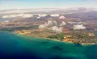 O diagrama seguinte representa as localidades num raio de 12 km ao redor de Ewa Beach.