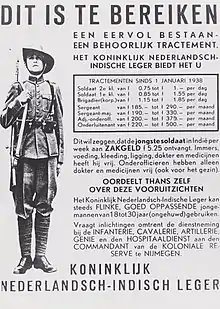Uma vez que o arquipélago foi considerado pacificado, o KNIL esteve envolvido principalmente em tarefas de vigilância militar. Para garantir um segmento militar europeu considerável no KNIL e reduzir o dispendioso recrutamento na Europa, o governo colonial introduziu o recrutamento para todos os conscritos masculinos residentes na classe jurídica europeia em 1917.[1][2][3]