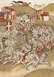 A lenda de Arnold von Winkelried aparece registada em meados do século XVI; as primeiras crónicas da Batalha de Sempach não lhe mencionam. Diz-se que Winkelried abriu uma brecha nas linhas da infantaria austríaca se lançando para suas lanças e derrubando com seu corpo, de forma que os confederados puderam atacar através da brecha aberta.