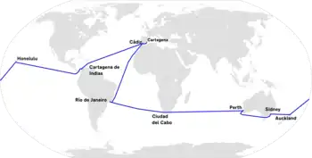 A expedição Malaspina foi realizada ao longo de 2010 e 2011 em dois navios oceanográficos. O "Hespérides (A-33)" , operado pela Armada espanhola , que fez a circum-navegação, e o "Sarmiento de Gamboa" , operado pelo CSIC , que trabalhou em paralelo com o primeiro entre Las Palmas e Santo Domingo (República Dominicana) e em retorno a Las Palmas. E em seu retorno para casa, para uma universidade flutuante destinada a formação em oceanografia para mestrandos.[4]