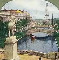 Lago Leste, estátua de São Luís, Palácios da Educação e Manufatura e torre de telégrafo sem fio.