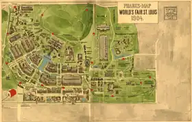 Em 1904, St Louis foi anfitriã de uma feira mundial com o intuito de comemorar a Compra da Louisiana de 1803. Foi atrasada em cerca de 1 ano para que mais estados e países pudessem participar da feira. Durou de 30 de abril a 1 de dezembro de 1904. A feira teve 4,9 km², projetados por George Kessler,[2] localizados no Forest Park e no campus da Universidade Washington em St. Louis e foi uma das maiores feira de todas, em área. Houve mais de 1 500 construções, conectadas por 120 quilômetros de estradas e calçadas. Diz-se que seria impossível andar por toda a feira e construções em menos de 1 semana. Somente o Palácio da Agricultura tinha 324 km².